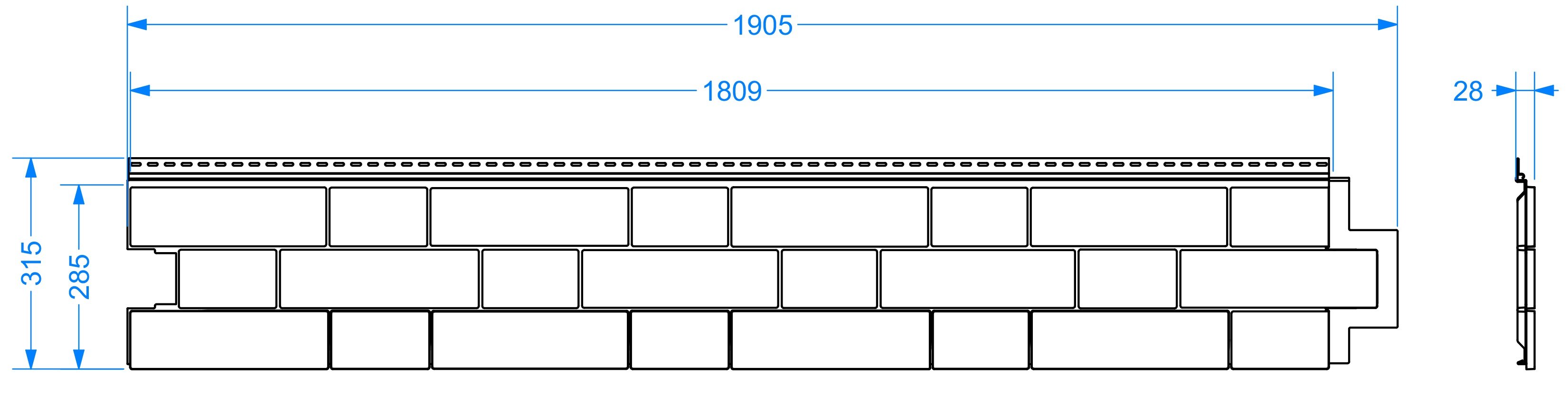 Чертеж панели сайдинга LUX под камень, BERGART